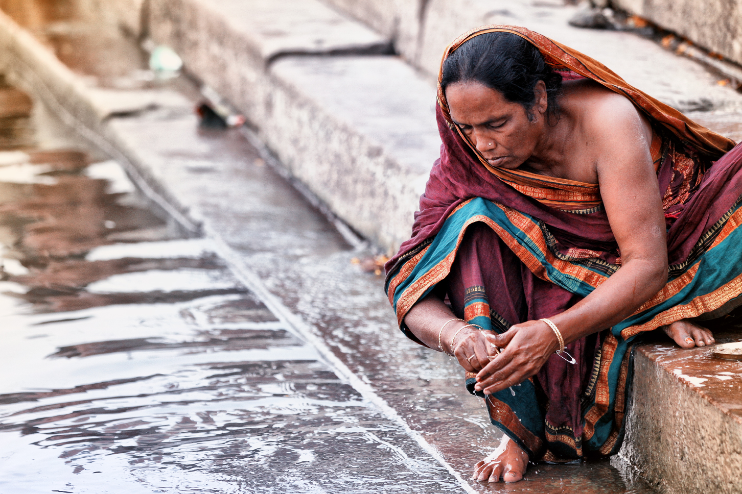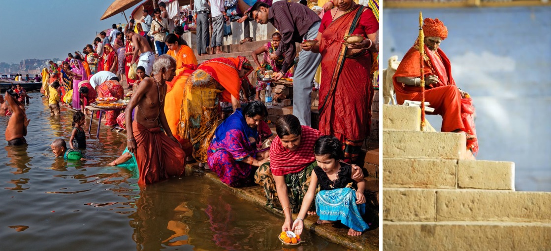 „Kaip Saulė pakyla dienos pradžioje išsklaidydama nakties tamsą, taip žmogus, nusimaudęs Gangoje, švyti savo didybe, nusiplovęs visas nuodėmes“. Mahabharata, 13 knyga: Anusasana Parva. „Ties Varanasiu Ganga plati, rami galinga. Būriai maldininkų meta upės gelmėn gėles, maudo kūdikius, patys brenda su rūbais ir apsinuoginę. Vieni meldžiasi, kiti gieda senovines giesmes, treti nebylūs, lyg sustingę medituoja, dar kiti pila ant savęs, geria iš saujos žalsvą vandenį, brenda į upę, maudosi. Ankstyvą rytą tekant saulei tu pasijunti tarsi ateivis iš kitos planetos. Netekęs žado iš valties stebi visą šį fantastinį reginį. O pro akis slenka miestas vis tolyn – kaip ir liepsnojantys laužai, kuriuose deginami mirusieji. Žmonės paverčiami pelenais, padedama sielai išsilaisvinti iš žemės gniaužtų.“(J.Nekrašas „Kelionių magija“ 2001‘7). Saulėtekis yra ypatingiausias dienos momentas, kai spalvų žaismėje nesimato šiukšlių ir upės nešvara nebado akių – tarsi užhipnotizuotas klausaisi ritmingai daužomų skalbinių, varpelių ir mantrų garsų...