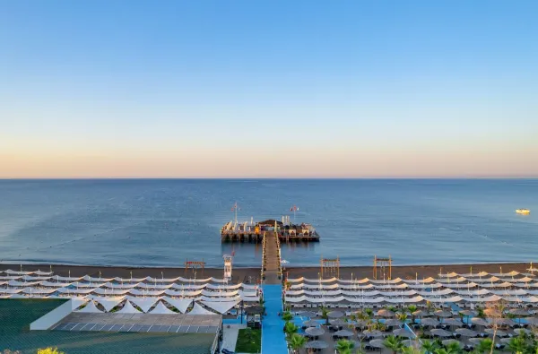 Viešbutis įsikūręs pačiame Laros kurorto centre, pirmoje jūros linijoje, vos už 15 minučių kelio nuo Antalijos oro uosto. Aplinka yra moderni, su tvarkingais pėsčiųjų takais, vedančiais per palmių alėjas tiesiai į privatų paplūdimį. Geografinė padėtis leidžia lengvai pasiekti didžiuosius prekybos centrus pėsčiomis, o pro kambarių langus atsiveria nuostabi Viduržemio jūros panorama. Tai puikus pasirinkimas tiems, kurie vertina greitą susisiekimą ir prestižinę kaimynystę.