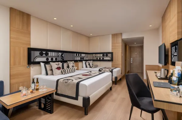 Erdvūs numeriai. Kambariai pasižymi dideliu plotu ir moderniomis technologijomis, o „Lagoon“ kambariai turi tiesioginį išėjimą prie baseino.