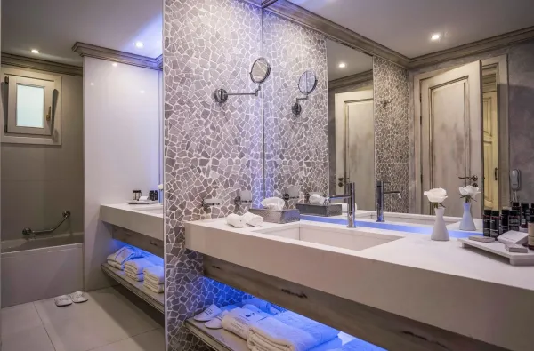 24 valandų „Viskas įskaičiuota“. Viešbutis siūlo pilną aptarnavimą visą parą, įskaitant vėlyvus užkandžius ir nemokamą mini barą kambariuose.