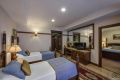 40 dviejų kambarių family room tipo kambarių (2 miegamieji atskirti durimis, 2 TV, maks. 4+1 asm., 45 m2).