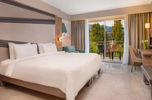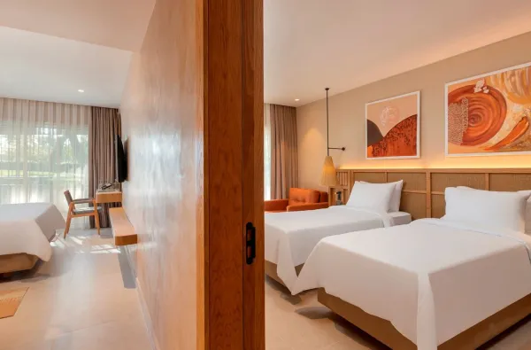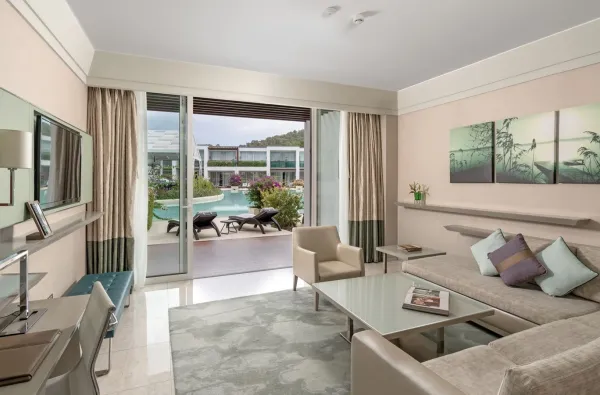 Svečiams siūlomas platus kambarių pasirinkimas: nuo standartinių numerių pagrindiniame pastate iki „Pool Suites“ ir išskirtinių vilų su asmeniniu aptarnavimu. Kambariai įrengti moderniu, šviesiu stiliumi, naudojant aukščiausios kokybės medžiagas, o pro langus atsiveria vaizdai į sodą, kalnus arba jūrą. Šeimyniniai numeriai yra itin funkcionalūs, su atskiromis erdvėmis tėvams ir vaikams, užtikrinant maksimalų privatumą. Poilsio kokybę garantuoja prabangūs čiužiniai, platus pagalvių meniu ir kasdien pildomas aukščiausios klasės mini baras.