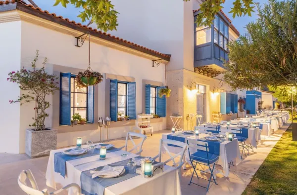 „Vakarienės metu pagrindiniame restorane būna sunku rasti laisvą staliuką lauko terasoje, nes visi nori mėgautis vaizdu.“