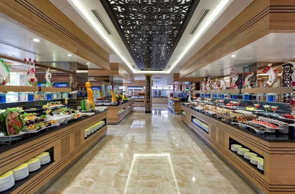 „Viskas įskaičiuota“ koncepcija. Gausus vietinės ir tarptautinės virtuvės pasirinkimas, užkandžių barai bei galimybė išbandyti à la carte restoranus.