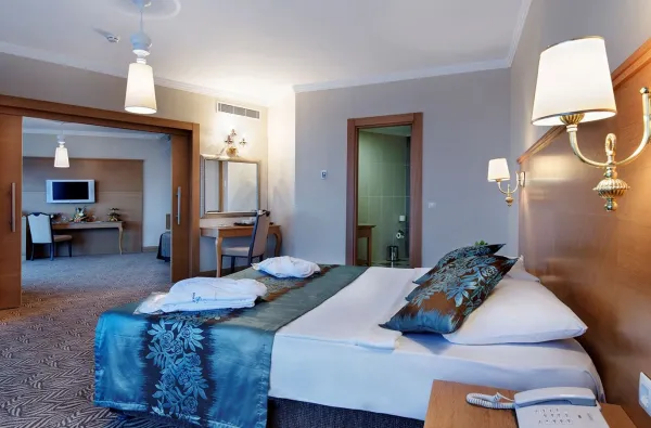 Saphir Hotel & Villas yra ilgametę patirtį sukaupęs 5 žvaigždučių kompleksas, įsikūręs vaizdingoje Konakli pakrantėje, Alanijos regione. Šis viešbutis išsiskiria savo unikalia architektūra, kurioje harmoningai dera pagrindinis pastatas ir jaukios vilos, išsidėsčiusios vešlaus sodo apsuptyje. Tai ideali vieta šeimoms, ieškančioms aktyvaus poilsio su vandens kalneliais ir gausia animacija, tačiau dėl savo žaliųjų erdvių viešbutis puikiai tinka ir ramybės ieškantiems keliautojams. Viešbutis garsėja puikiu kainos ir kokybės santykiu, plačiu paplūdimiu bei svetinga atmosfera, kurią sukuria ilgus metus čia dirbantis personalas.