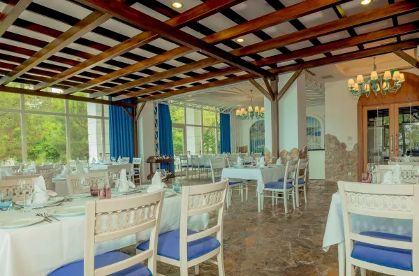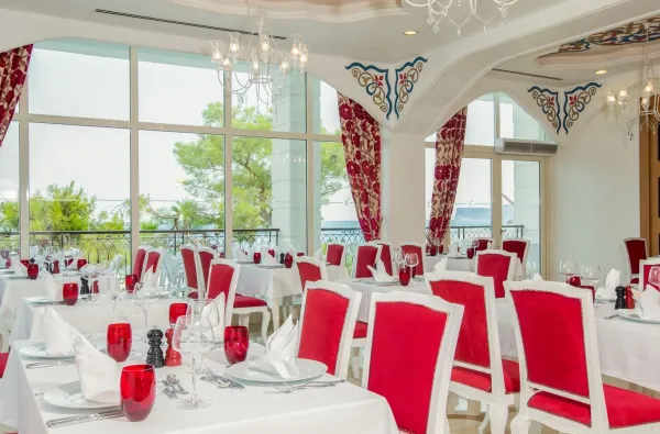 A la carte restoranai: Viešbutyje yra keletas à la carte restoranų. Dažniausiai jie yra mokami (už papildomą mokestį, pvz., 25–30 €), išskyrus specialius pasiūlymus, galiojančius kai kurių aukštesnių kategorijų kambarių svečiams (pvz., vilų gyventojams).