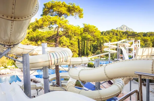 Vandens pramogų pasaulis. Didžiulis vandens parkas su daugybe įvairaus sudėtingumo čiuožyklų suaugusiems ir atskira zona vaikams garantuoja adrenaliną visai dienai.