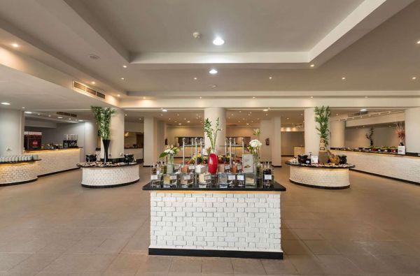 Įvairus maitinimas ir komfortiški kambariai. Viešbutis siūlo „All Inclusive“ su 1 bufetu ir 6 à la carte restoranais (italų, azijietiška, egiptietiška, graikiška virtuvė, Burger House, jūros gėrybės), 6 barais (įskaitant Shisha barą ir 24h Lobby barą). Kambariai erdvūs, su balkonu arba terasa, mini baru, oro kondicionieriumi; yra swim-up kambariai.