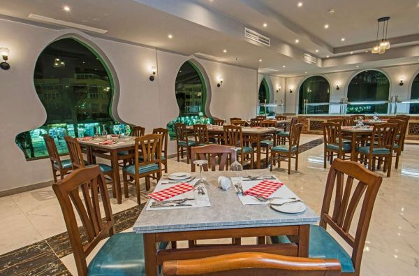 Maitinimo sistema viešbutyje yra stiprioji pusė – be pagrindinio restorano su gausiu švediško stalo pasirinkimu, veikia net keletas à la carte restoranų (italų, graikų, azijiečių, burgerių, egiptiečių). Maistas yra įvairus ir kokybiškas: kasdien siūloma žuvis, mėsa, daugybė salotų ir vaisių, o vegetarai bei vaikai taip pat randa sau tinkamų patiekalų. Svečiai ypač vertina galimybę nemokamai lankytis teminiuose restoranuose, kas suteikia vakarienėms įvairovės ir šventiškumo.