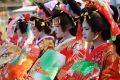 Jau pastebėjote, kad Kioto žavesys vibruoja ne tik aukščiau žemės, bet ir ant jos. Galbūt Jums jau išpuolė laimė žvilgsniu palydėti gatve grakščiai „plaukiančias“ gražuoles, įsisupusias į spalvingus kimono? Prie jų nepratusiai vakariečio akiai egzotinė praeivė su vėduokle arba lengvu skėčiu rankoje – kaip ne šio realaus pasaulio gyventoja, veikiau kaip meilės romanų ir kino filmų personažas. Geiša iš japonų kalbos išvertus reiškia „menininkę“. Kioto geišos turi atskirą pavadinimą – geiko, pažodžiui – „meno moteris“. Šiame tūkstantametyje mieste gyvuoja kelios tradicinės geiko bendruomenės. Dvi jų įsikūrusios senajame Giono rajone. Pasivaikščiokite po siauras jo gatves tarp neaukštų medinių pastatų. Maiko – tai geiko mokinės. Paprastai jos scenos artisčių karjerą pradeda paauglystėje. Pas vyresniąsias geišas maiko mokosi grožio paslapčių, arbatos ceremonijos, muzikos ir šokių subtilybių. Jau dvidešimtmetės merginos dažniausiai būna pasirengusios rodyti šou scenoje plačiajai publikai, pilstyti arbatą ir asistuoti svečiams. Keičiantis laikams, šiek tiek keitėsi ir geišų padėtis. Arthuro Goldeno romanas „Geišos išpažintis“, pagal kurį Robas Marshallas sukūrė garsųjį filmą, atskleidžia tik dalelę intriguojančio „meno moterų“ gyvenimo užkulisių. O prisiliesti prie geišų kultūros tiesiogiai įmanoma tik viešint Japonijoje.