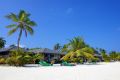 Kuredu sala, Laviani atolas. Ant vandenyno kranto. Šalia smėlio paplūdimio. Atstumas iki oro uosto yra apie 150 km (Velanos tarptautinio oro uosto, Malės).