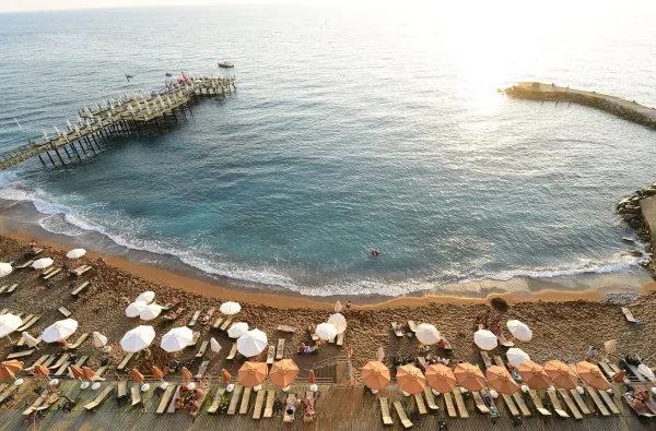 Viešbutis turi nuosavą smėlio ir žvirgždo paplūdimį, kuriam suteiktas Mėlynosios vėliavos sertifikatas, garantuojantis vandens švarą. Kadangi viešbutis yra ant kalno, į paplūdimį svečiai patenka naudodamiesi liftu arba reguliariai kursuojančiu autobusiuku, o vėliau pereina tilteliu. Paplūdimyje yra baras, užkandžių zona, dušai ir persirengimo kabinos, taip pat pirsas deginimuisi, todėl čia galima patogiai praleisti visą dieną.