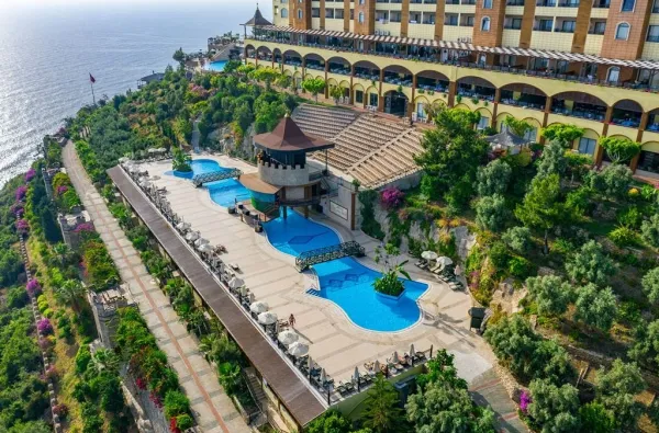 Unikali panorama. Viešbutis įsikūręs ant uolos, todėl iš beveik bet kurios teritorijos vietos atsiveria neįtikėtini Viduržemio jūros ir Alanijos pakrantės vaizdai.