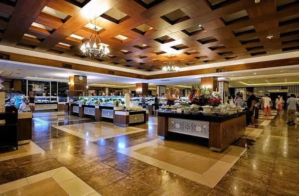 Viešbutyje veikia pagrindinis restoranas bei keli à la carte restoranai, siūlantys turkų, italų ir žuvies patiekalus. Maisto pasirinkimas yra itin gausus: nuo šviežių salotų ir vaisių iki įvairios mėsos, žuvies bei tradicinių turkiškų desertų. Ypatingas dėmesys skiriamas maisto kokybei ir įvairovei, todėl net ir išrankiausi gurmanai ar specialių mitybos poreikių turintys svečiai (vegetarai, vaikai) ras sau tinkamų patiekalų.