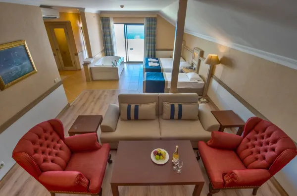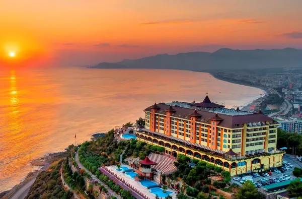 „Utopia World Hotel“ Alanijoje yra unikalus, ant kalvos įsikūręs 5 žvaigždučių atostogų miestas, siūlantis kvapą gniaužiančias panoramas ir paslaugas pagal „Ultra Viskas Įskaičiuota“ sistemą. Tai viena įspūdingiausių vietų Turkijos pakrantėje, skirta tiems, kurie ieško ne tik poilsio prie jūros, bet ir estetinio pasigėrėjimo gamta, pušynais bei istoriniu paveldu, esančiu tiesiog viešbučio teritorijoje. Viešbutis ypač didžiuojasi savo milžinišku vandens pramogų parku ir unikalia lokacija, kuri sukuria jausmą, lyg atostogautumėte tarp dangaus ir jūros. Nors kompleksas yra ant kalno, o kelionė iki paplūdimio reikalauja nusileidimo liftu ar autobusiuku, šis nedidelis nepatogumas su kaupu atsiperka dėl atsiveriančių vaizdų ir krištolo skaidrumo oro. Tai idealus pasirinkimas šeimoms ir poroms, kurios vertina aktyvų poilsį, gamtos apsuptį ir kokybišką aptarnavimą.
