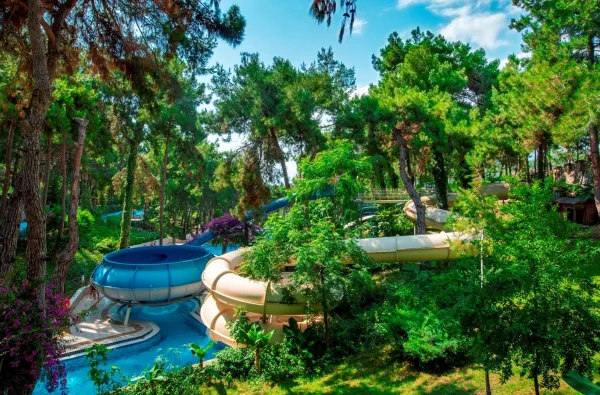 Vandens pramogų gausa. Didžiulis, 15 000 kv. m. plotą užimantis vandens parkas su daugybe kalnelių ir plaukimo baseinų garantuoja veiklos visai dienai.